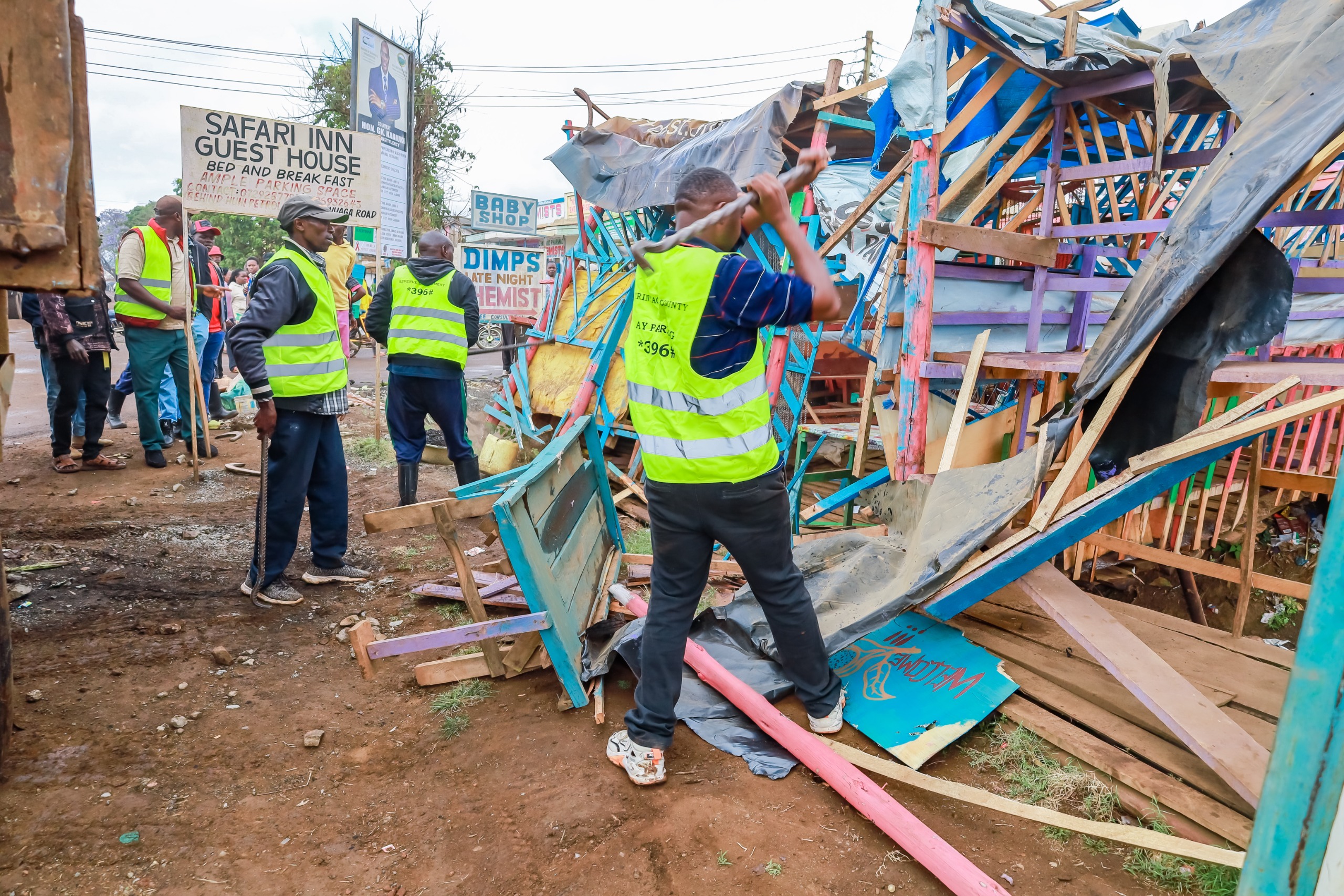 On Thursday, county enforcement officers, police and business community leaders began the operation in Kagio town, demolishing structures constructed atop or along stormwater drains.