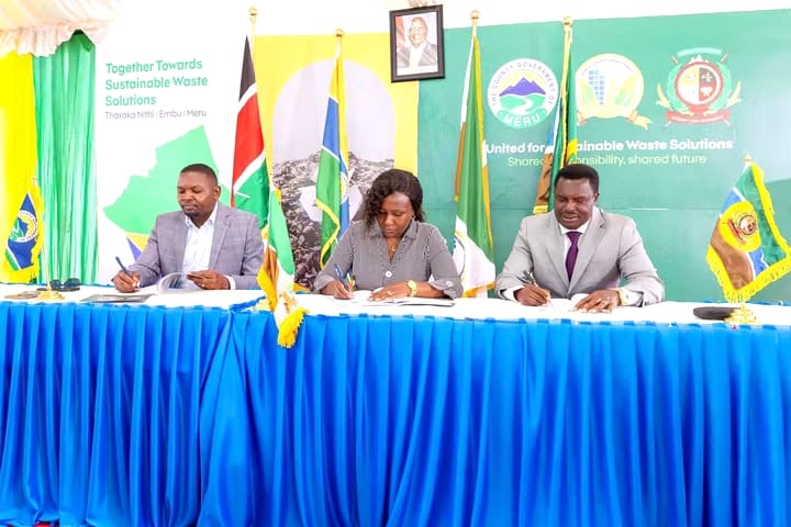 A landmark Memorandum of Understanding on waste management was signed on Thursday at the Meru county governor’s office by governors Isaac Mutuma, Cecily Mbarire (Embu) and Tharaka Nithi’s Muthomi Njuki.