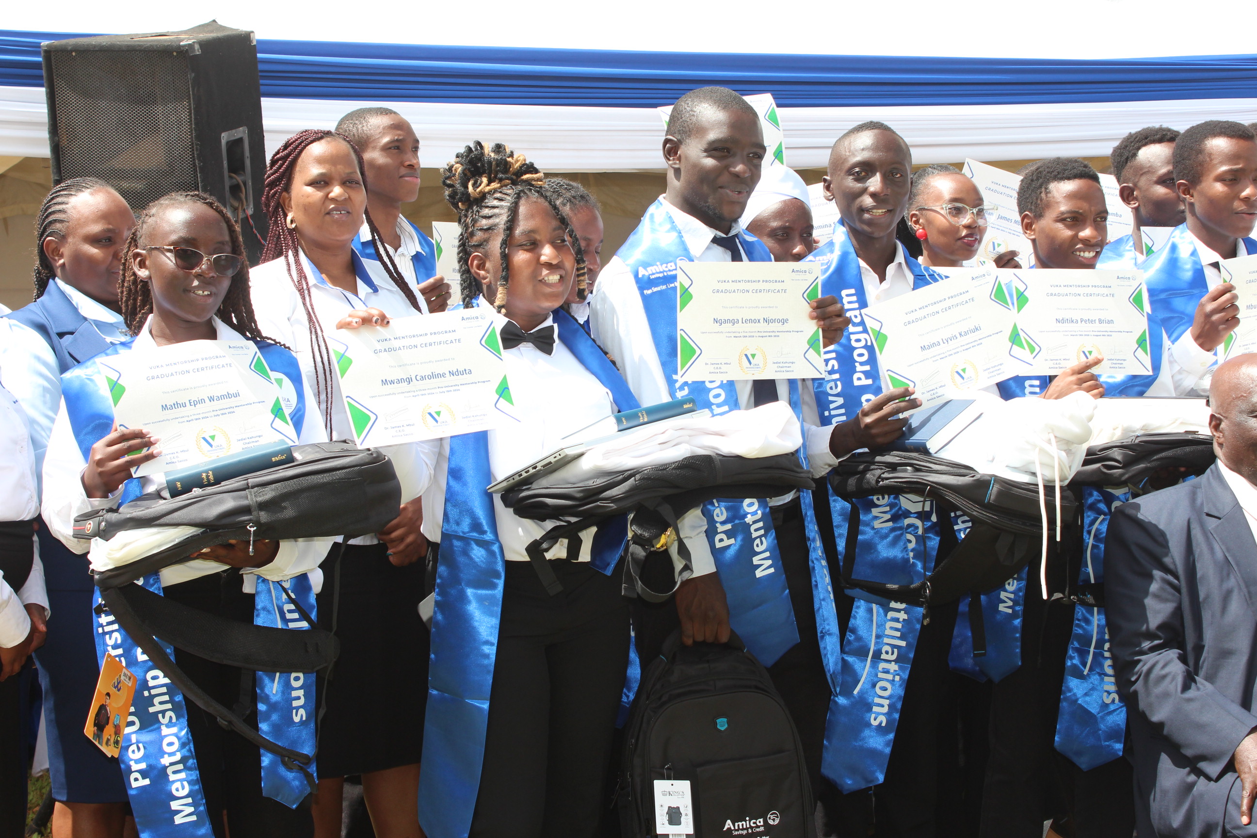 Some of the beneficiaries of VUKA mentorship programme during their gradiation in Murang'a townMany of the beneficiaries who are from disadvantaged backgrounds have enrolled in universities and colleges using money they earn through the programme.