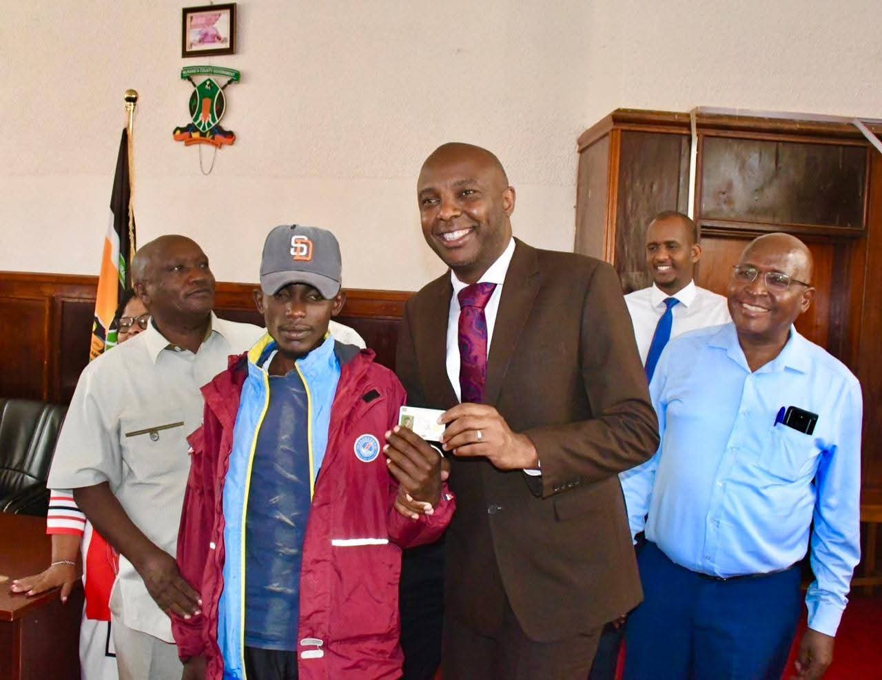 Governor Irungu Kang'ata issues a smart license to a bodaboda rider at the county headquarters on November 20, 2025About 350 boda boda riders from Murang’a county have