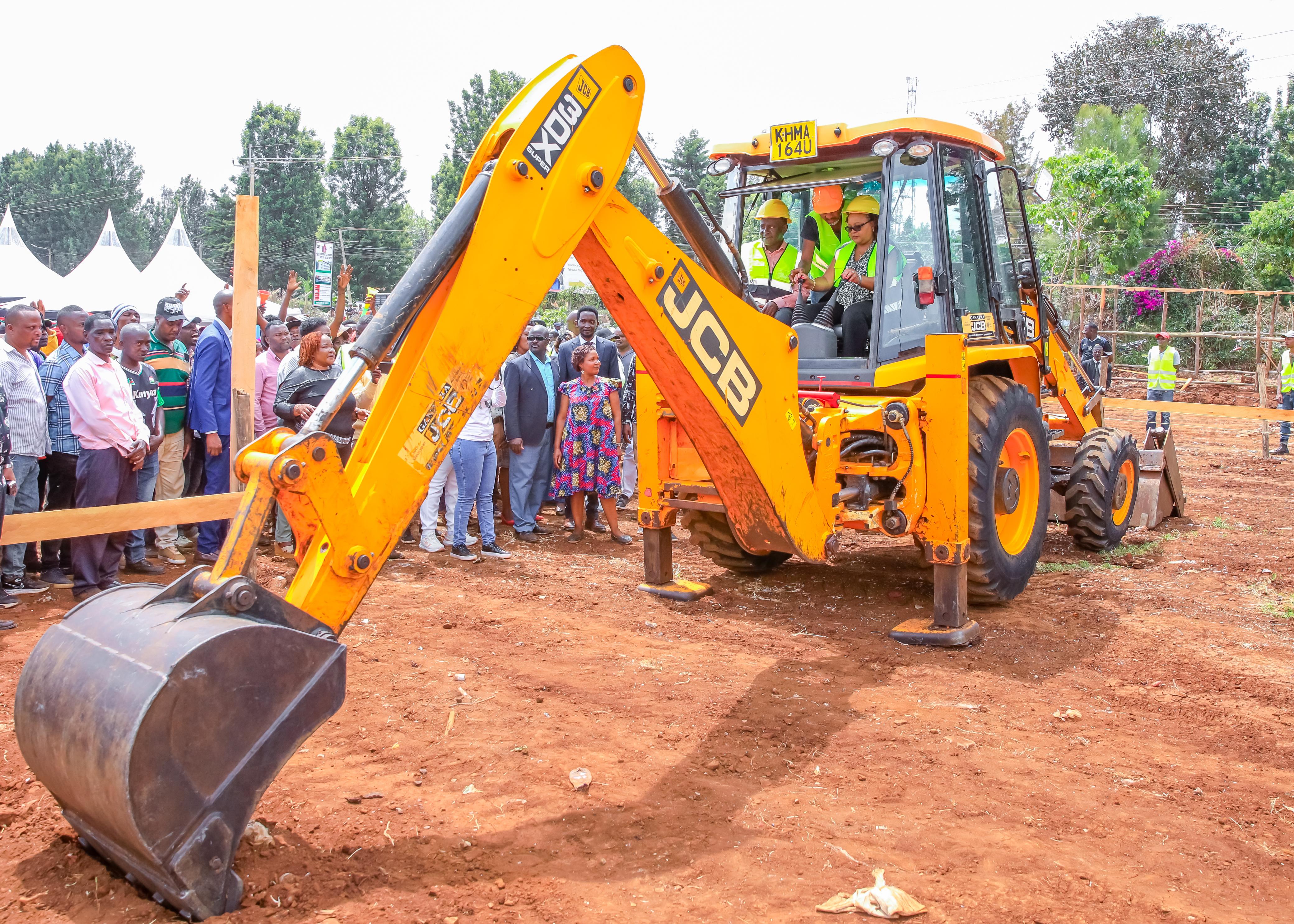 Kirinyaga County Governor Anne Waiguru operates a tractor as she breaks ground for the first-ever Kenya Medical Training College (KMTC) in the county on December 5, 2025./HANDOUT
