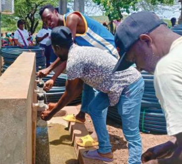 The project includes a borehole fitted with solar-powered pumps and a network of pipes and fittings to distribute water directly to homes and farms in the village.