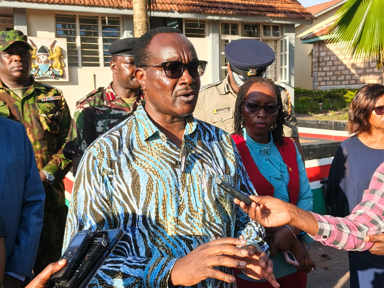 Education CS Julius Ogamba at Kwale headquarters in Matuga, Kwale county on Monday / BRIAN OTIENO