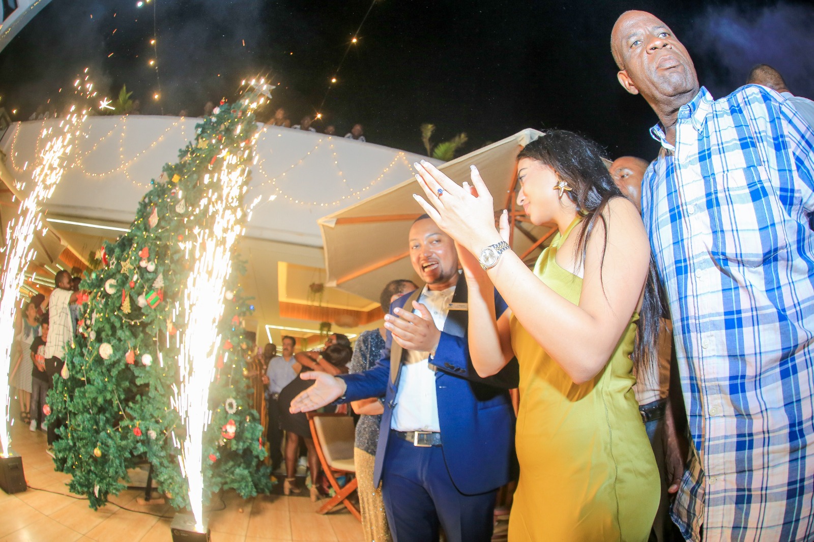 Inaara Jiwan and general manager John Yegon during the Christmas tree-lighting ceremony