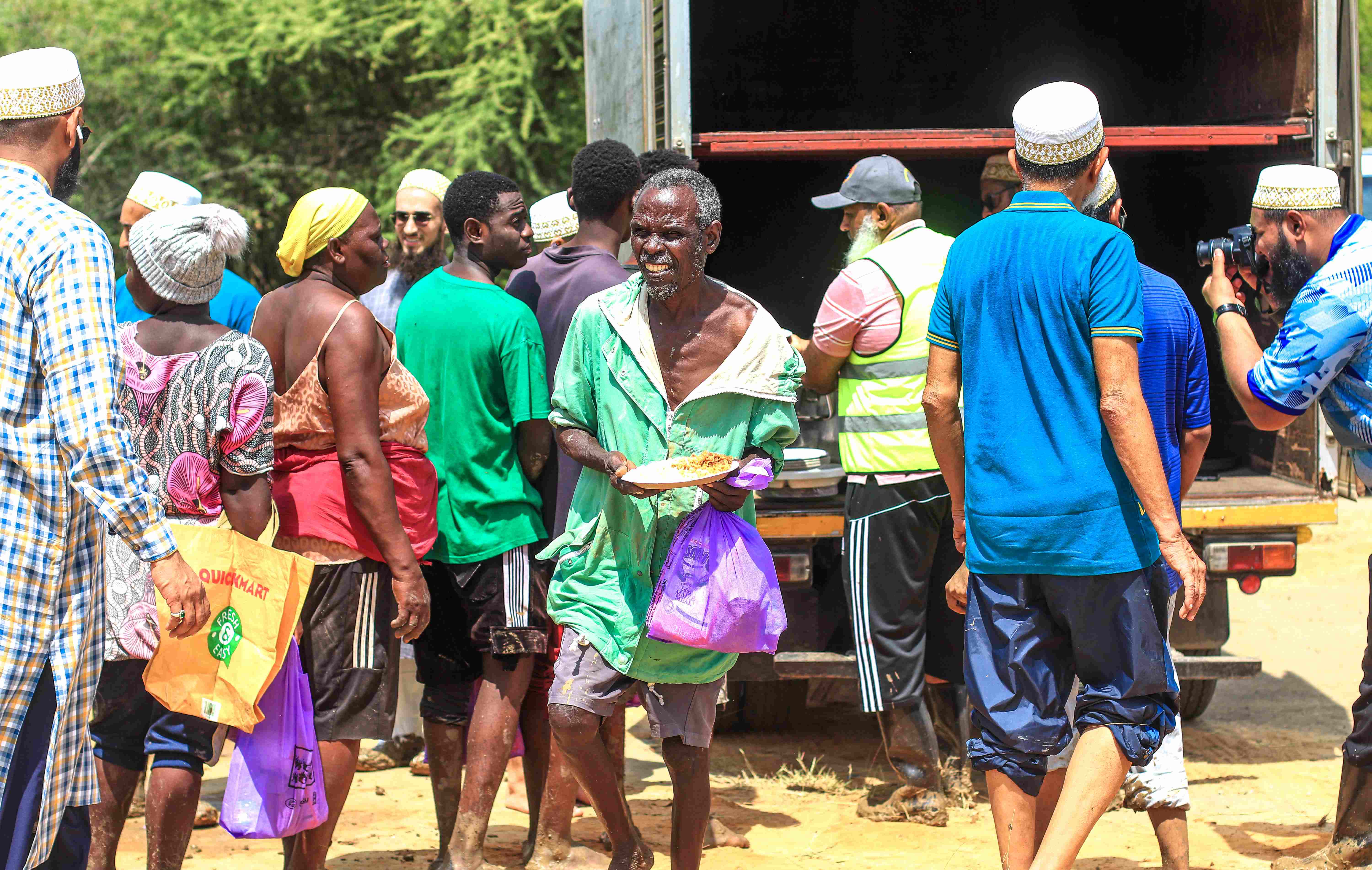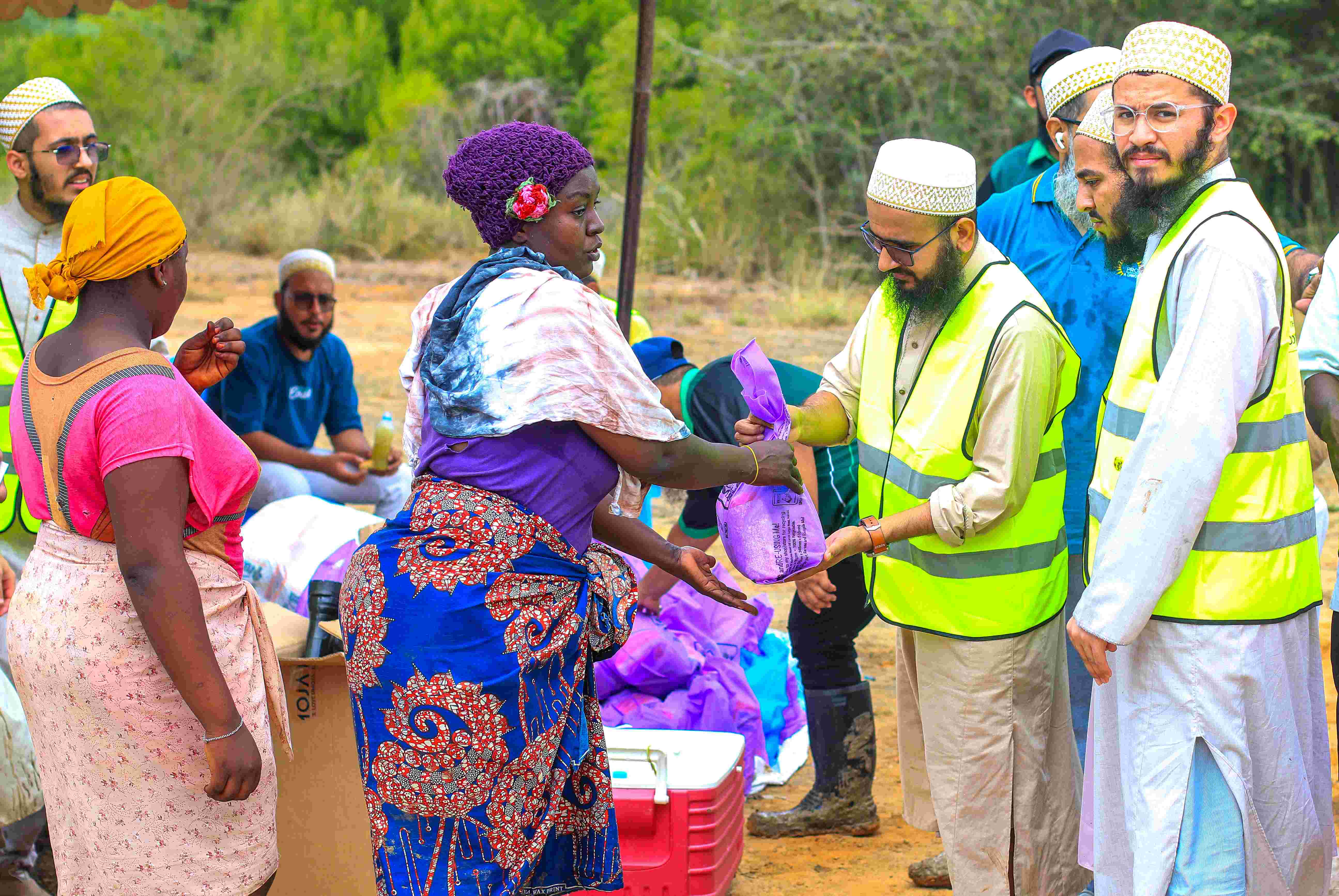 locals receive food support from the Dawoodi Bohra Community after planting mangroves
