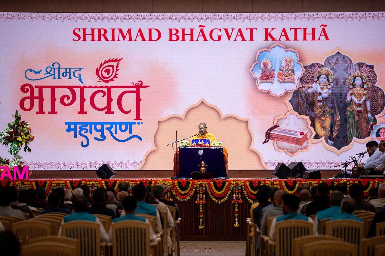 At the BAPS Mandir, devotees are also attending the daily discourses by Pujya Tyagvatsal Swami, who is guiding the community through the philosophical and moral lessons of the Shrimad Bhagwat Mahapuran.