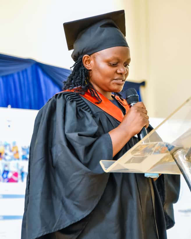 Perhaps the most vivid illustration of the stakes involved came through the story of Rose Akoth Ouna, the top national performer in the Higher Diploma in Critical Care Nursing and a full scholarship recipient of the college.