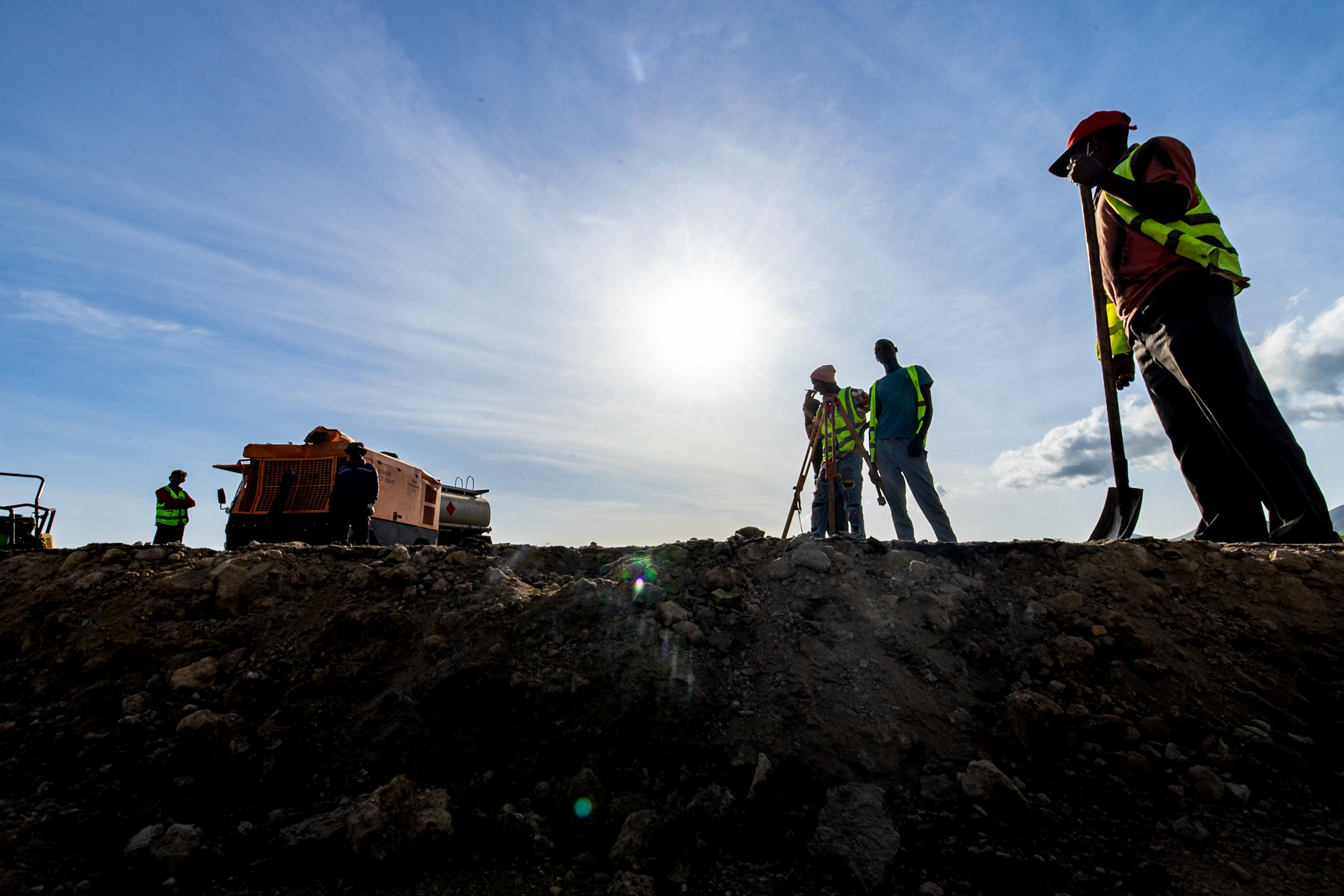 Men in action at the construction site of the Isiolo-Mandera Highway on May 27, 2025/DPCS.
