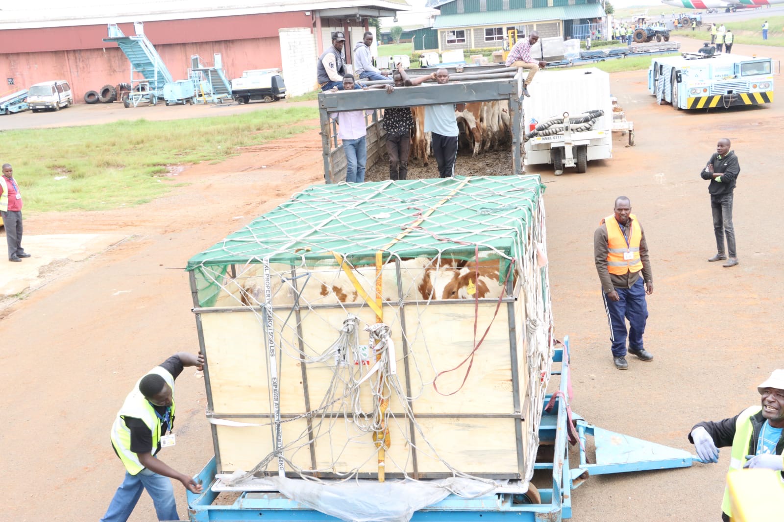 The heifers sourced from farmers across the county, were flown directly from Eldoret International Airport to Nigeria.