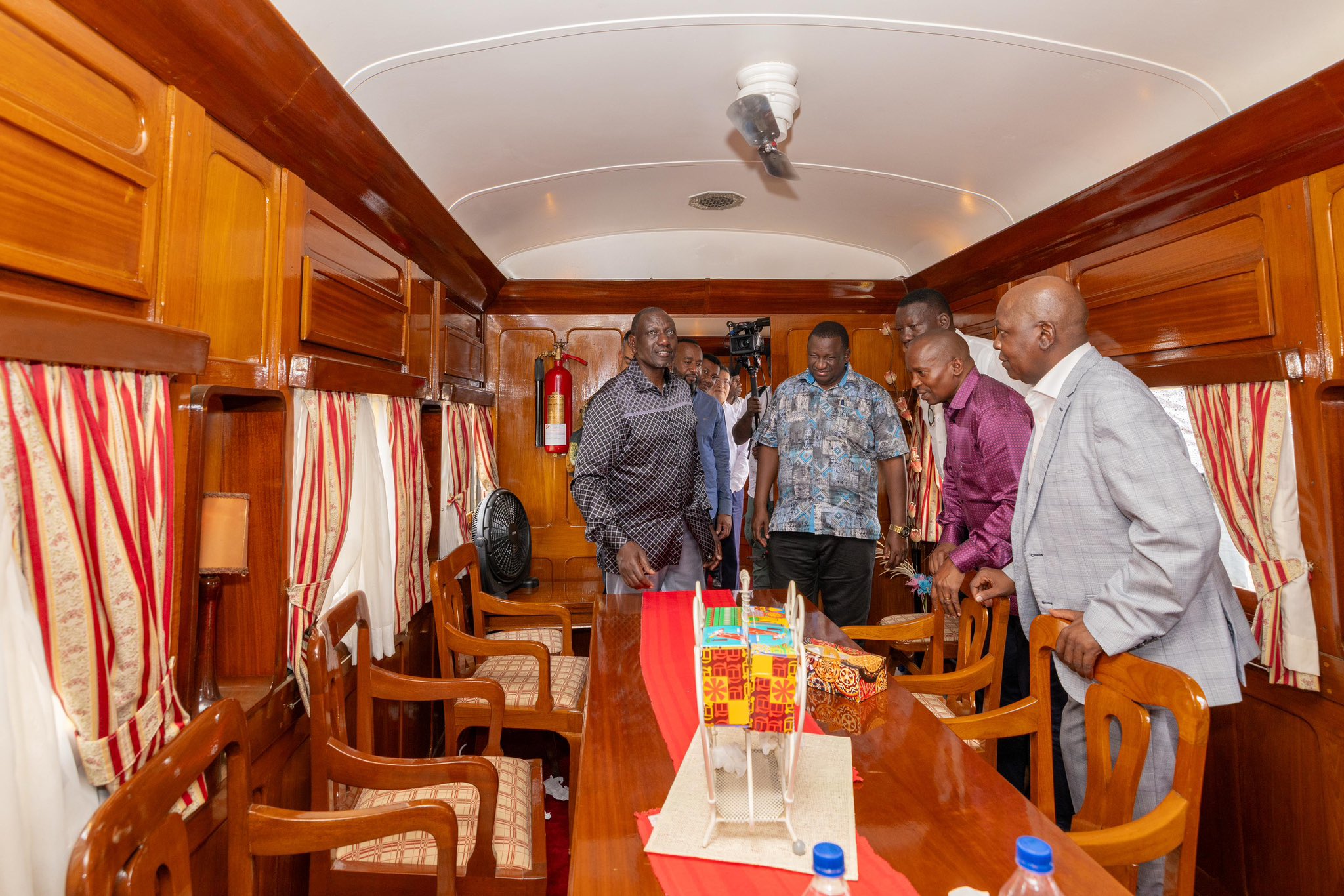 President William Ruto on Wednesday took his maiden ride on the Mombasa commuter rail service, moments after officially commissioning the project at the Mombasa town terminus.