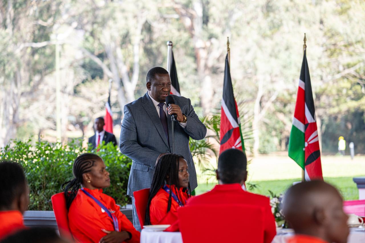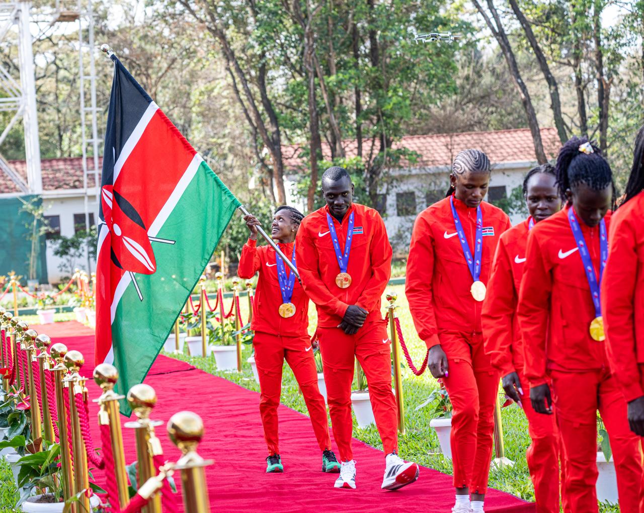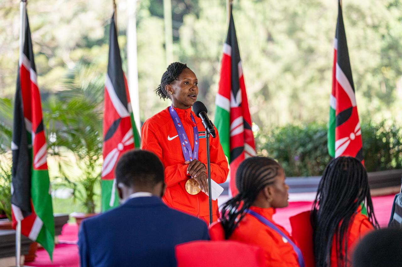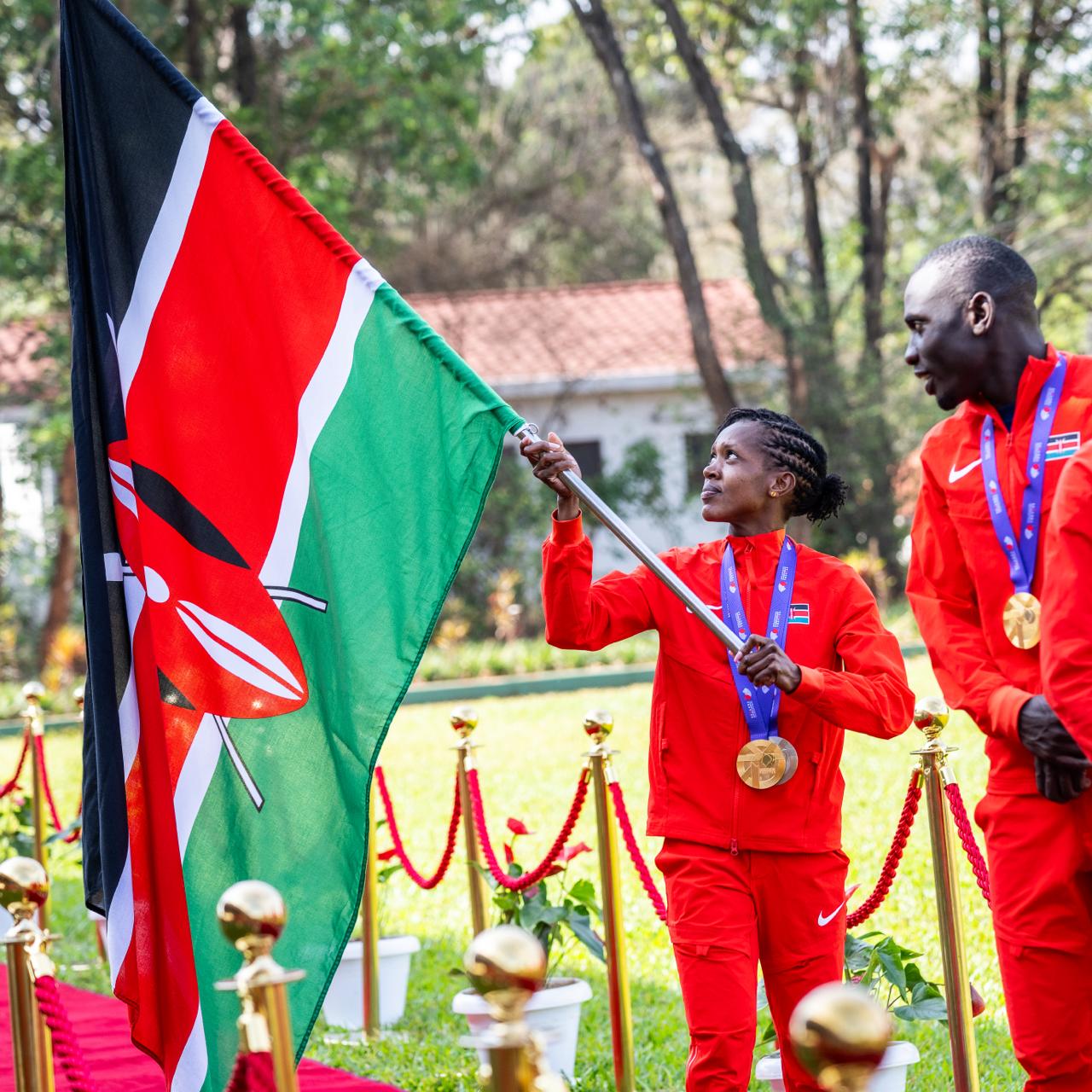 President William Ruto awards a dummy cheque to Edmund Serem at State House/PCSA section of the athletes during breakfast at the State House/PCSPresident William Ruto shakes hands with Julius Yego as DP Kithure Kindiki looks on/PCSPresident William Ruto shakes hands with an athlete/PCSPresident William Ruto and DP Kithure Kindiki with the Tokyo champions at State House/PCSTokyo Team Kenya, when they arrived at State House for breakfast/PCSFaith Kipyegon and Emmanuel Wanyonyi, with other athletes at State House on October 2, 2025/PCSFaith Kipyegon speaks during the event at State House on October 2, 2025/PCSPresident William Ruto joins other athletes in a breakfast State House/PCSDeputy President Kithure Kindiki joins the athletes in serving Breakfast at State House on October 2, 2025/PCSFaith Kipyegon, carrying the Kenyan flag, when they arrived at State House on October 2, 2025/PCSPresident William Ruto and DP Kithure Kindiki with the athletes at State House/PCSSports Cabinet Secretary Salim Mvurya speaks during the event/PCS