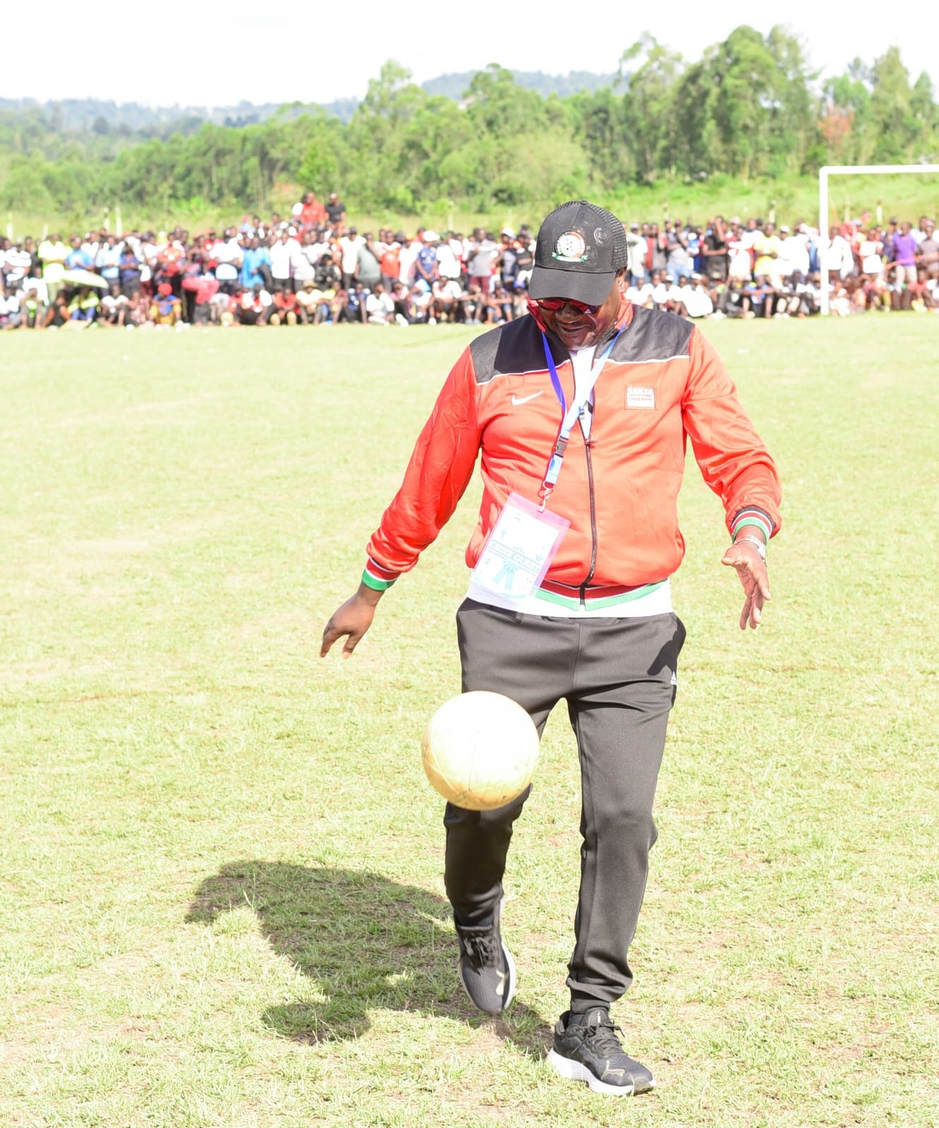 Education Cabinet Secretary Julius Migos Ogamba juggles the ball during the KATTISO Lake Region games/HANDOUTCoach Joseph Juma is confident following their regional success, saying they are prepared for the national championships in Mombasa later this month.