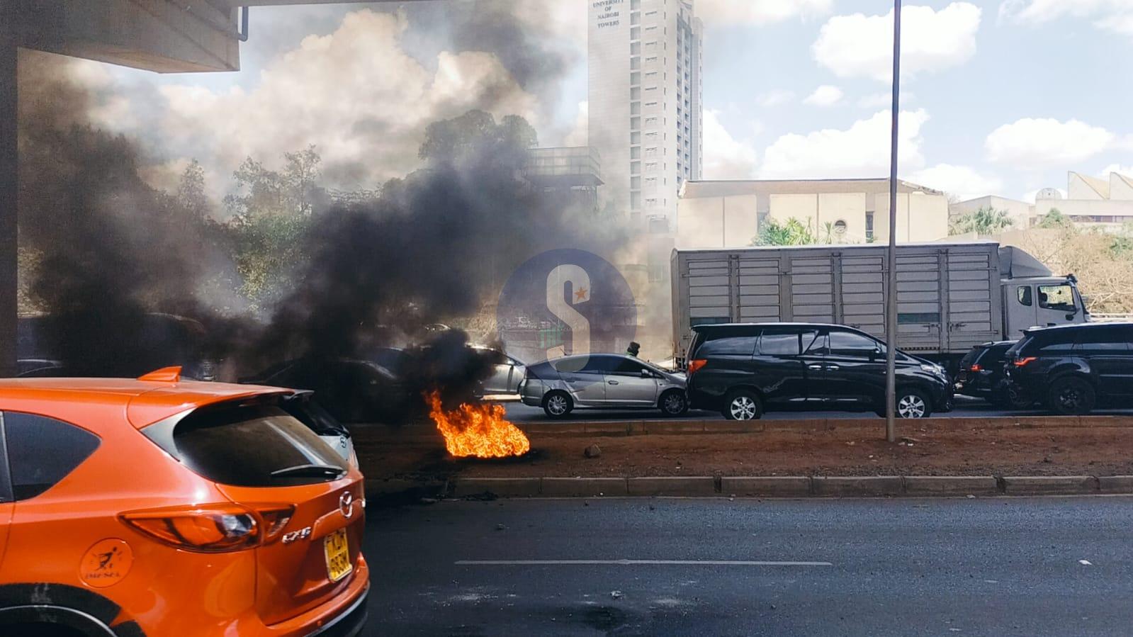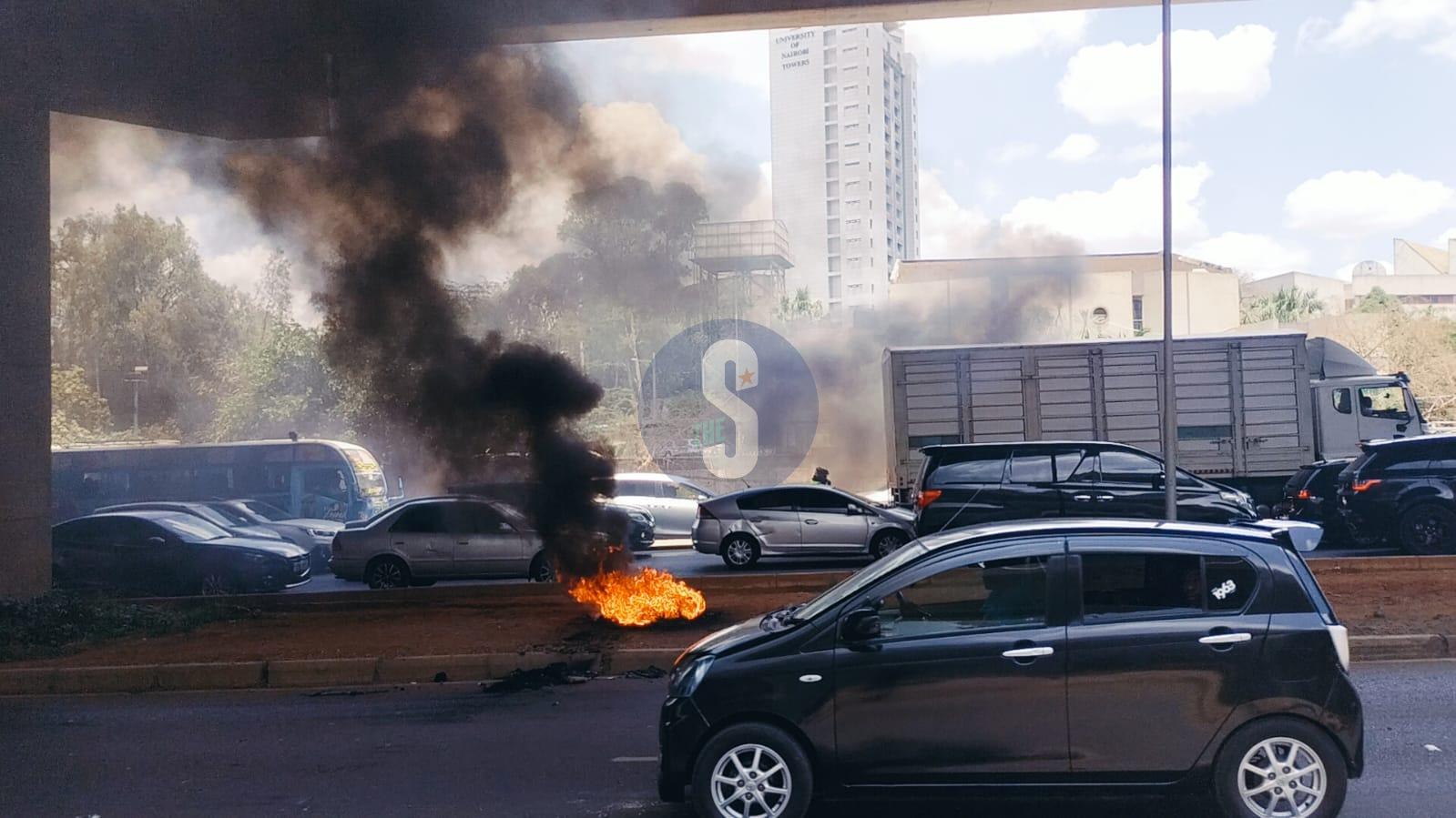 The protest, organised by the University of Nairobi Students Association (UNSA), began at the students’ hostels before spilling onto State House Road, where demonstrators set fire to debris and temporarily paralyzed traffic.