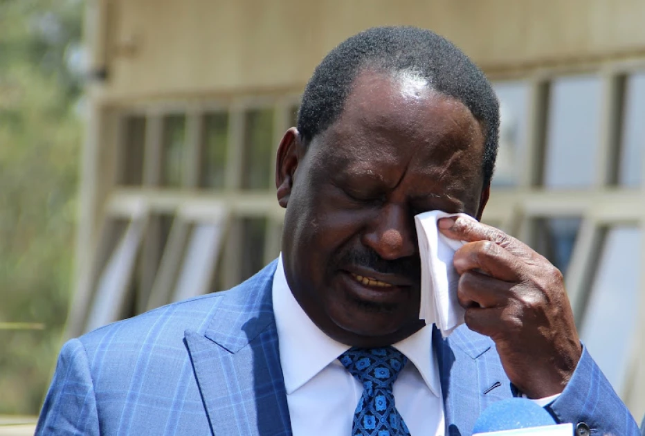 Raila Odinga after addressing a news conference at the Harambee House