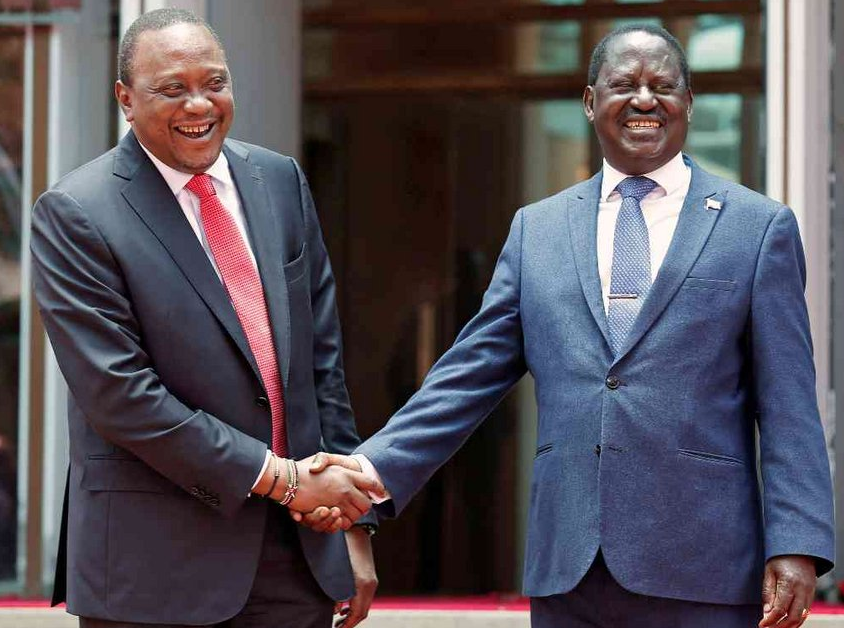 signing ceremony after 2007/08 PEV at the steps of Harambee House/FILEThe NASA General Raila Odinga with co-principal Kalonzo Musyoka in 2017/COURTESYFormer Prime Minister Raila Odinga during one of his many maandamanos in 2017/FILE Former president Uhuru Kenyatta greets opposition leader