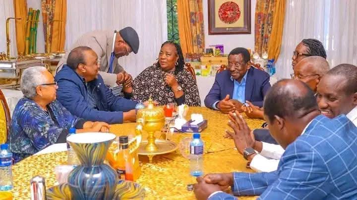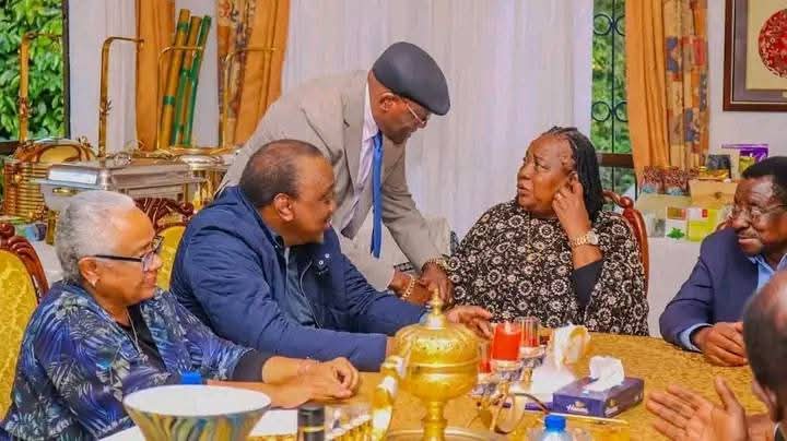 Former President Uhuru Kenyatta, his wife, Margaret Kenyatta and other dignitaries condole Ida Odinga at her Karen home on October 15, 2025./HANDOUT