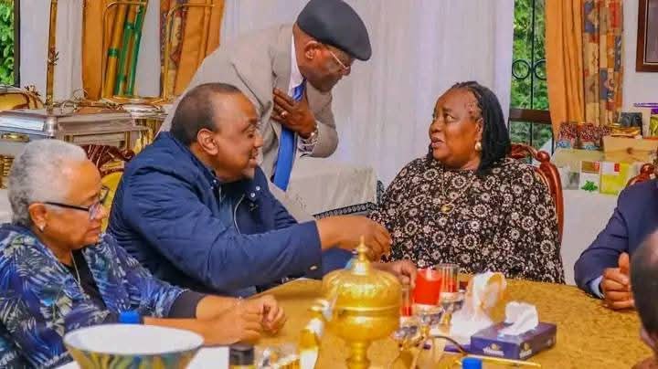 Former President Uhuru Kenyatta and his wife, Margaret Kenyatta, were among the dignitaries who visited the Raila Odinga family to condole with them following the death of the former Prime Minister in India.