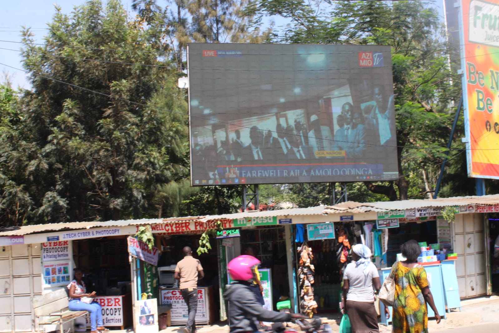 At the Kisumu boys roundabout, passersby and bodaboda operators were glued to the screens along the Streets to follow the happenings in Nairobi.