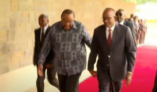 President William Ruto and former President Uhuru Kenyatta have arrived at the Jomo Kenyatta International Airport (JKIA) ahead of the arrival of the body of the late Raila Odinga.
