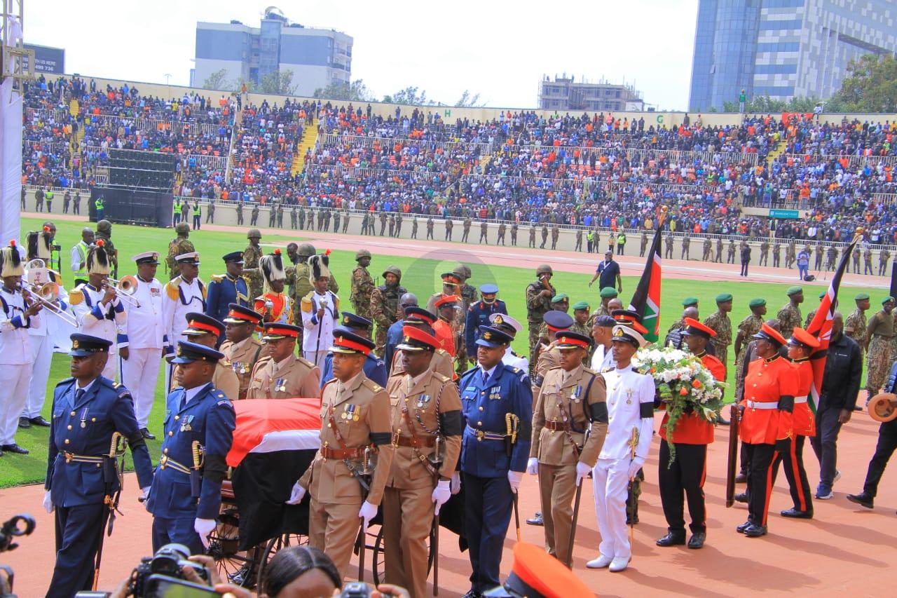 A national funeral service is currently being held at the Nyayo national stadium in honour of Raila ahead of his burial at his rural home in Bondo on Sunday.
