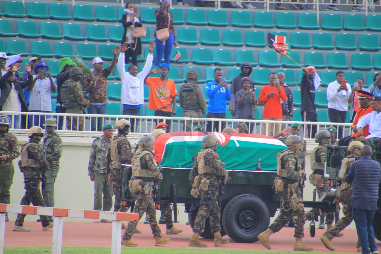 On Friday, the focus shifted to Nyayo Stadium, where thousands of mourners braved the morning chill to witness the state funeral.