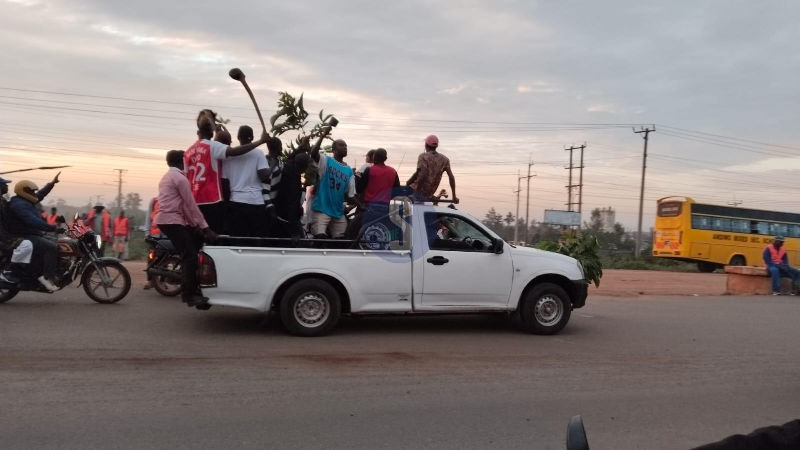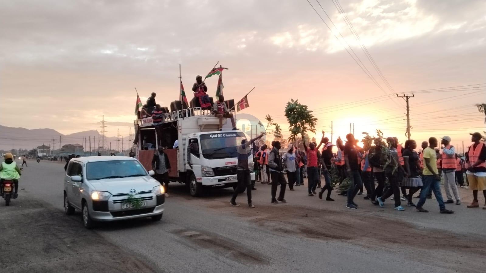 Groups of young and old alike waved flags and twigs, some carrying large portraits of Raila as they sang liberation songs and chanted his name.
