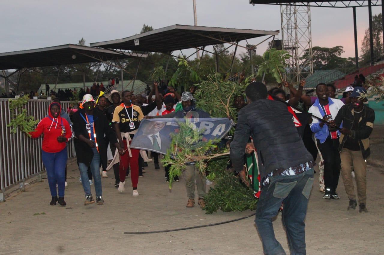 By 6 a.m., hundreds of locals had already thronged the venue, many wrapped in party colours and carrying placards bearing Raila’s image.
