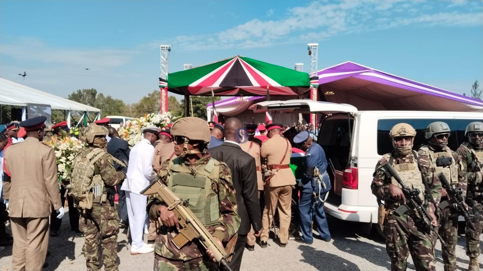 The body of former Prime Minister Raila Odinga has arrived at Jaramogi Oginga Odinga University of Science and Technology (JOOUST) for the funeral service.