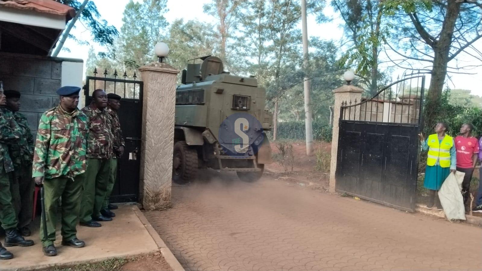 Security tight as preparations are ongoing to remove the body of Former Prime Minister Raila Odinga at his home in Opoda farm to JOOUST for the Funeral service./FAITH MATETESecurity tight as preparations are ongoing to remove the body of Former Prime Minister Raila Odinga at his home in Opoda farm to JOOUST for the Funeral service./FAITH MATETESecurity tight as preparations are ongoing to remove the body of Former Prime Minister Raila Odinga at his home in Opoda farm to JOOUST for the Funeral service./FAITH MATETESecurity tight as preparations are ongoing to remove the body of Former Prime Minister Raila Odinga at his home in Opoda farm to JOOUST for the Funeral service./FAITH MATETEArmed military vehicles and security personnel have been deployed to secure the area and manage the large number of mourners expected to accompany the procession.