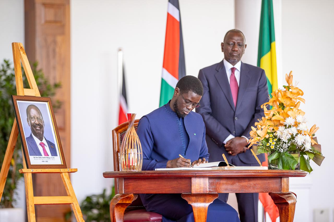 President Bassirou Diomaye Faye of Senegal on Tuesday signed the condolence book at State House, Nairobi, in honour of Kenya’s late former Prime Minister Raila Odinga.