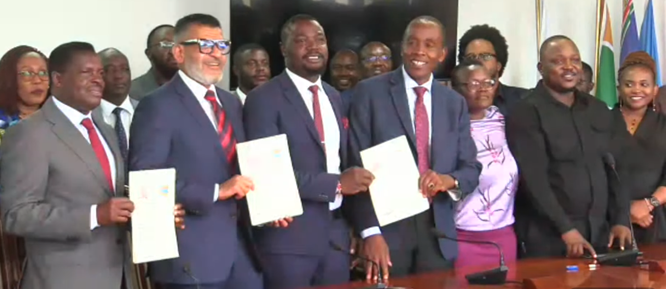 Among those present during the signing ceremony were Kiambu Governor Kimani Wamatangi, his Mombasa counterpart Abdulswamad Nassir, and KMPDU secretary general Davji Atellah.