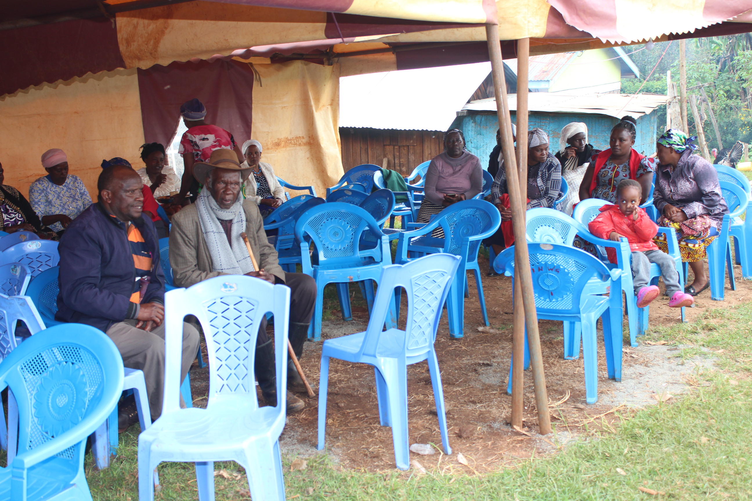 Residents of Ndia Village congregate at the homestead of the five who lost their lives in a road accident barely two kilometres away./ALICE WAITHERAAnother person who perished in the accident, a woman, had been picked up minutes before at Gatunyu shopping centre by the driver and was not part of the family.