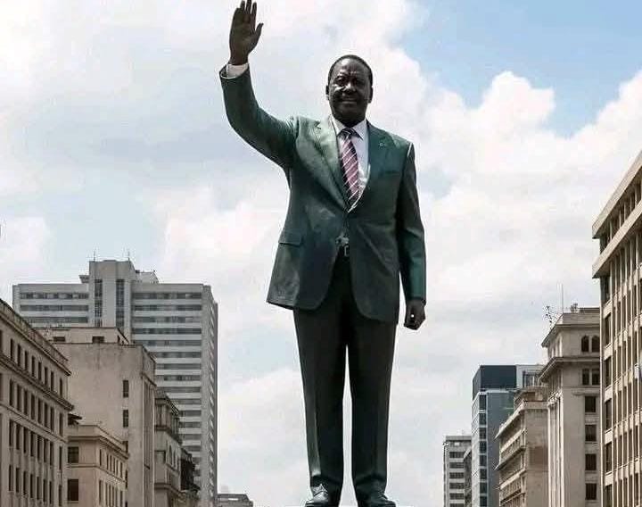 In their proposal to the State House and City Hall, the group outlined plans for a life-size statue depicting Raila in a grey suit and red-and-white striped tie, with his right hand raised in his trademark salute.