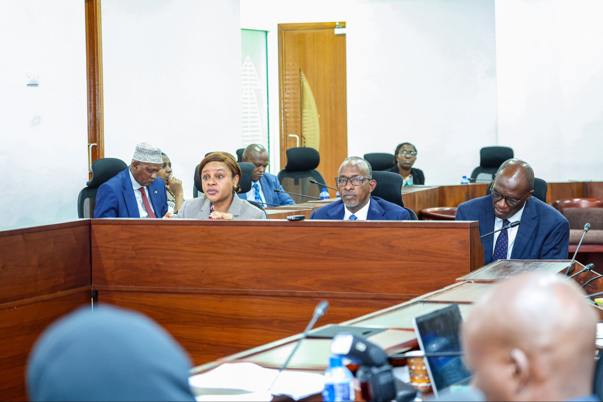 Duale and Principal Secretary Mary Muthoni before the Committee chaired by