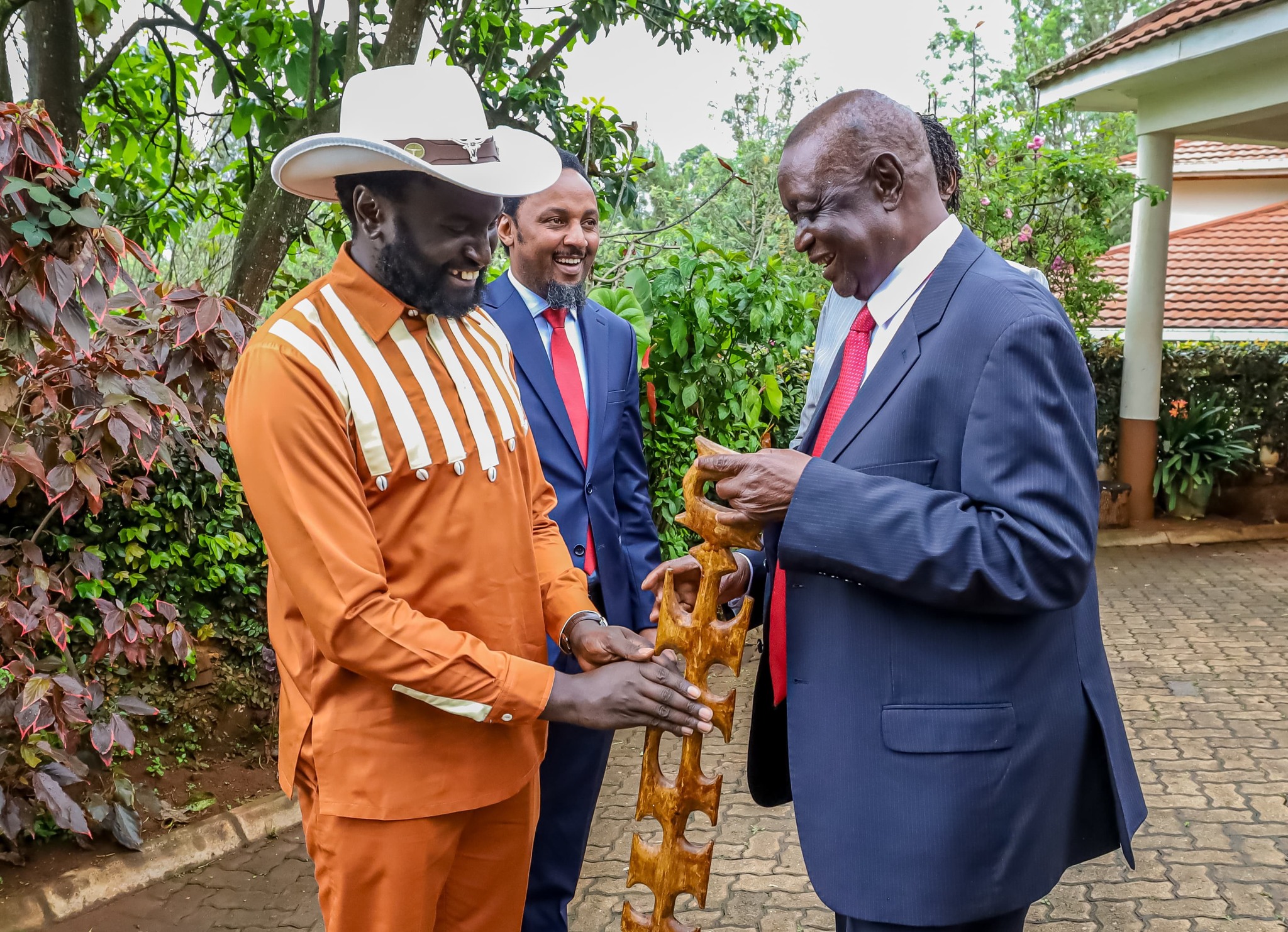 The delegation, led by Senators John Methu (Nyandarua) and Karungo wa Thang’wa (Kiambu), presented him with three white sheep—a traditional sign of peace and friendship.
