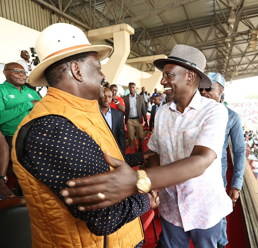 Former Prime Minister Raila Odinga with President William Ruto/FILE