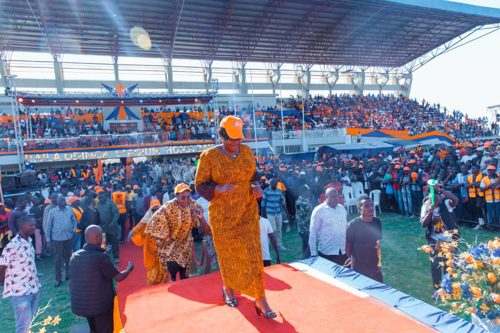 Homa Bay Governor Gladys Wanga addressing the crowd The day also saw the county pledge support for Oburu Odinga as the new ODM party leader, underscoring the continuity of the ideals Baba championed.