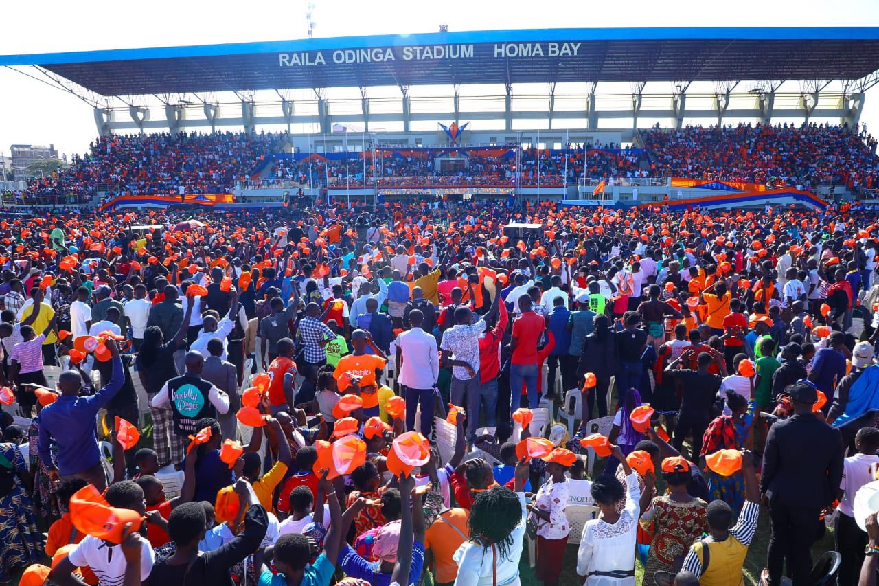 Crowds at Raila Odinga stadium during the Ecumenical Memorial Service in honour of the late Raila Odinga, November 5, 2025. /ODMThousands gathered for the first Ecumenical Memorial Service in honour of the late Raila Odinga at Raila Odinga stadium in Homa Bay on Wednesday.