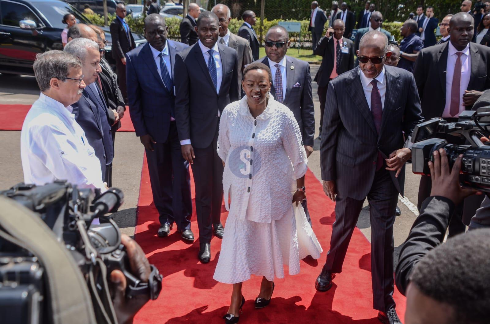 Security personnel carrying the official seat of the First Lady Rachel Ruto First Lady Rachel Ruto during the official launch of Cochlear Implant Program witnessed by Her Royal Highness Princess Lalla Asmaa of the Kingdom of Morocco at Kenyatta National Hospital on November 5, 2025./DOUGLAS OKIDDY