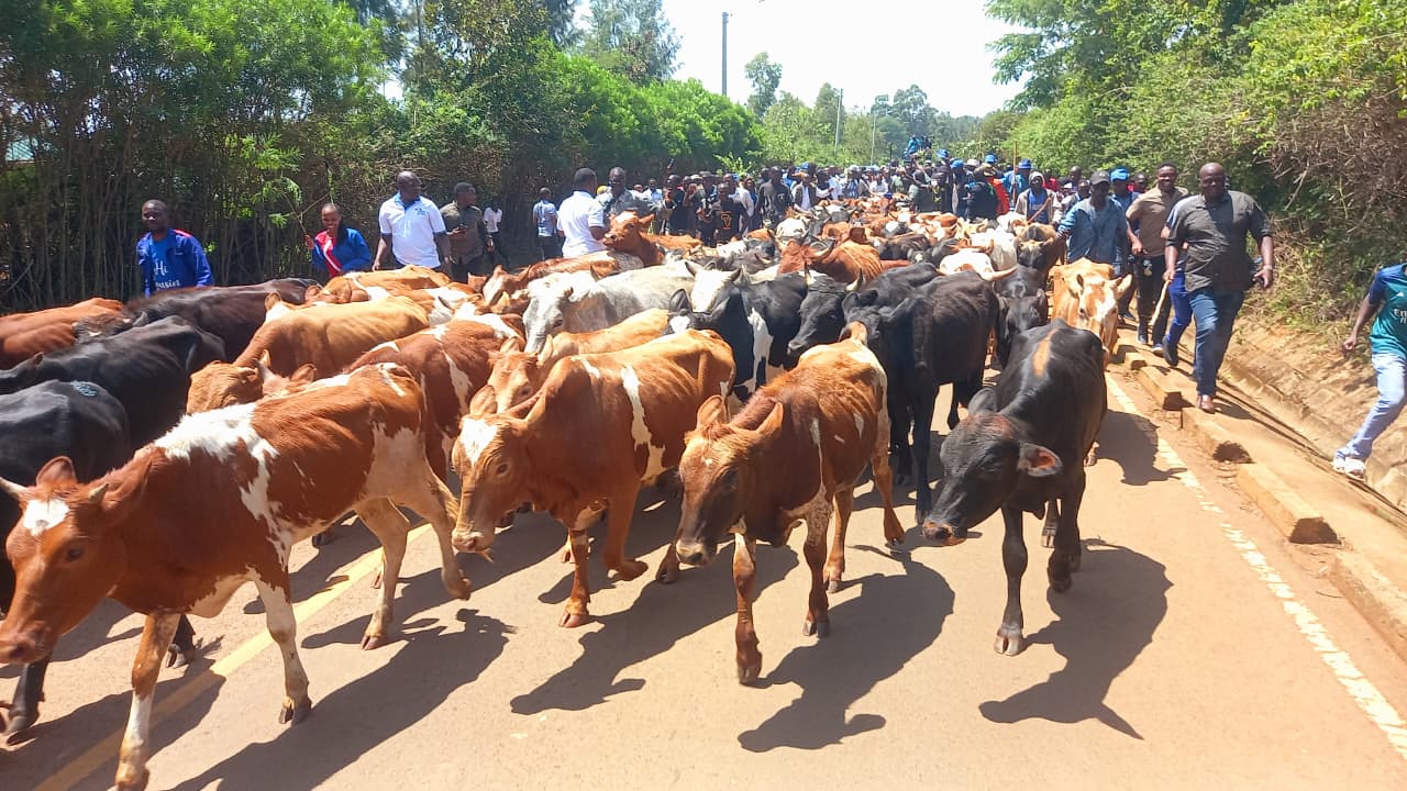 Heards of cattle's headed to Opoda farm in Bondo as Wiper leader Kalonzo Musyoka leads delegation to pay tribute to Raila Odinga./FAITH MATETE