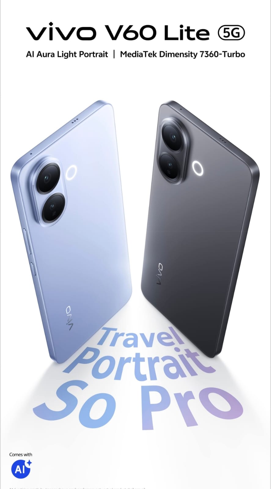 From its next-level portrait system and vibrant display to its long-lasting battery and slim design, the vivo V60 Lite reflects vivo’s commitment to merging lifestyle and technology in one powerful device.