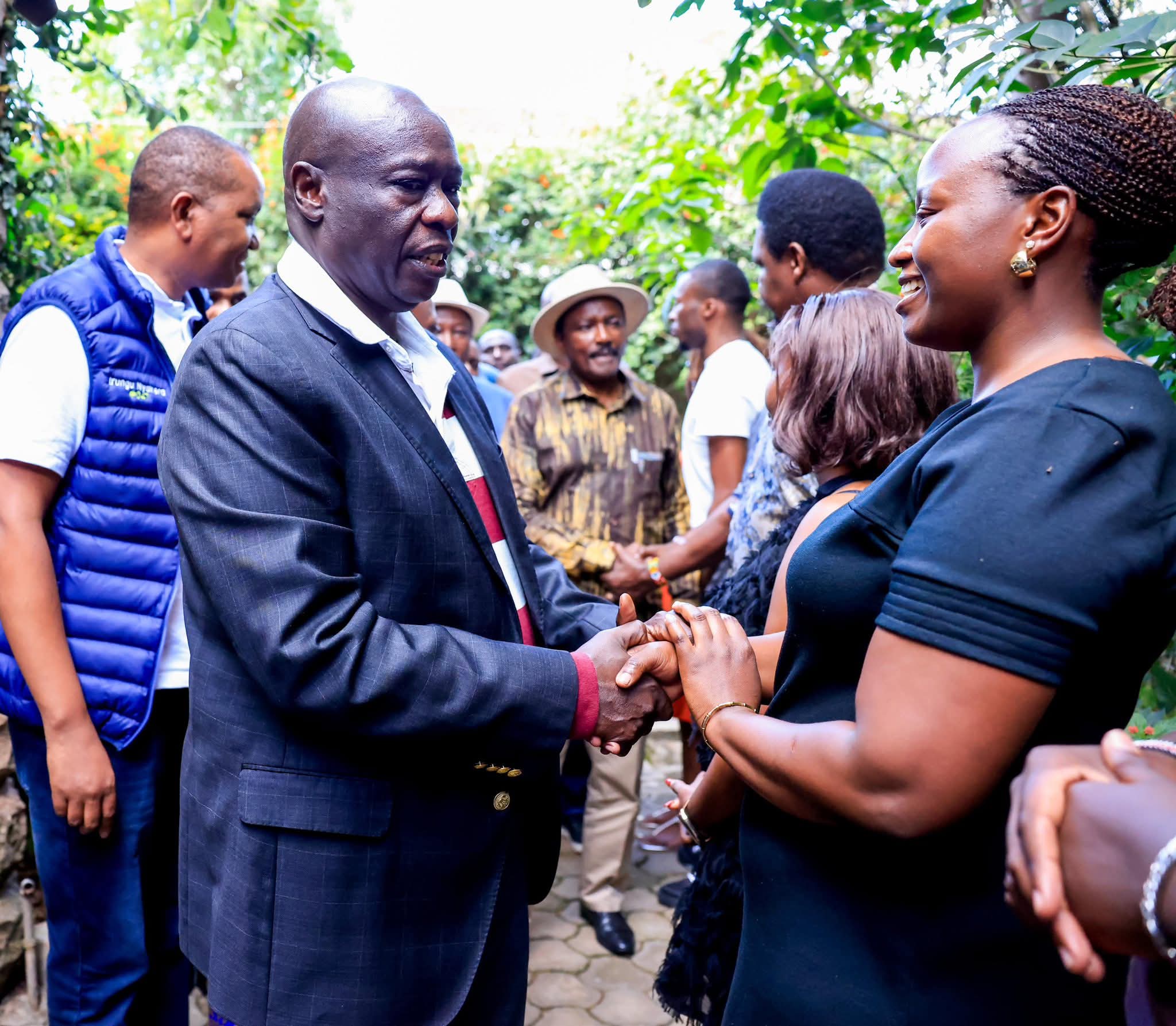 Former Deputy President Rigathi Gachagua shakes hands with some family members during a visit to the home of the late JM Kariuki in Nairobi on November 8,2025/X