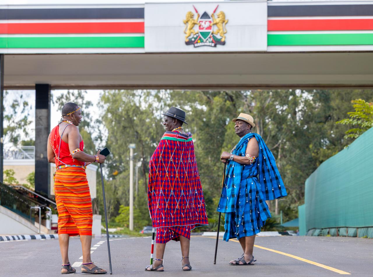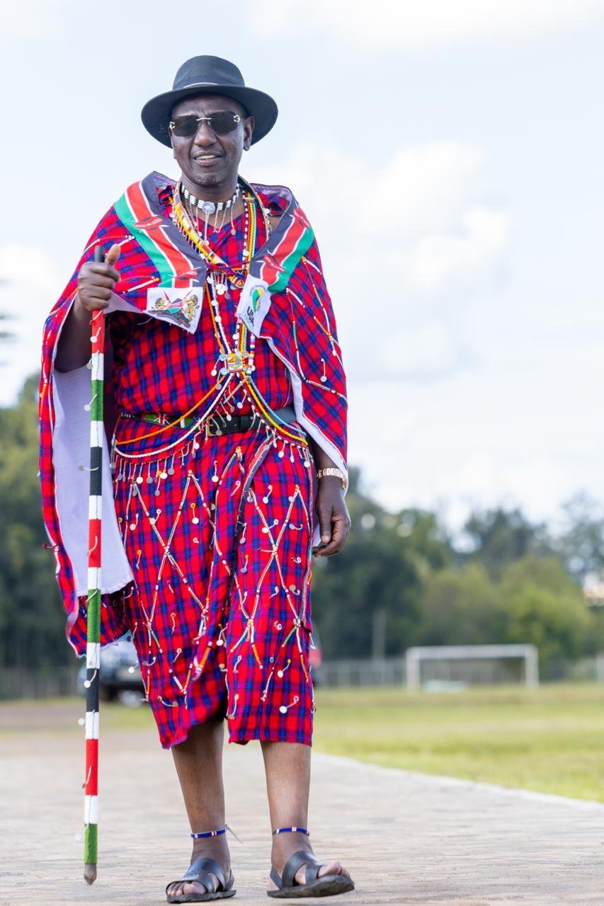Ruto was clad in full regalia, featuring a bright red shúkà draped elegantly over his shoulder, complemented by intricately beaded jewellery.
