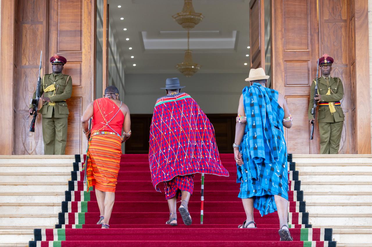 President William Ruto arrived at State House, Nairobi, Saturday evening, dressed in full Maasai regalia after attending the Maa Cultural Festival in Kajiado.