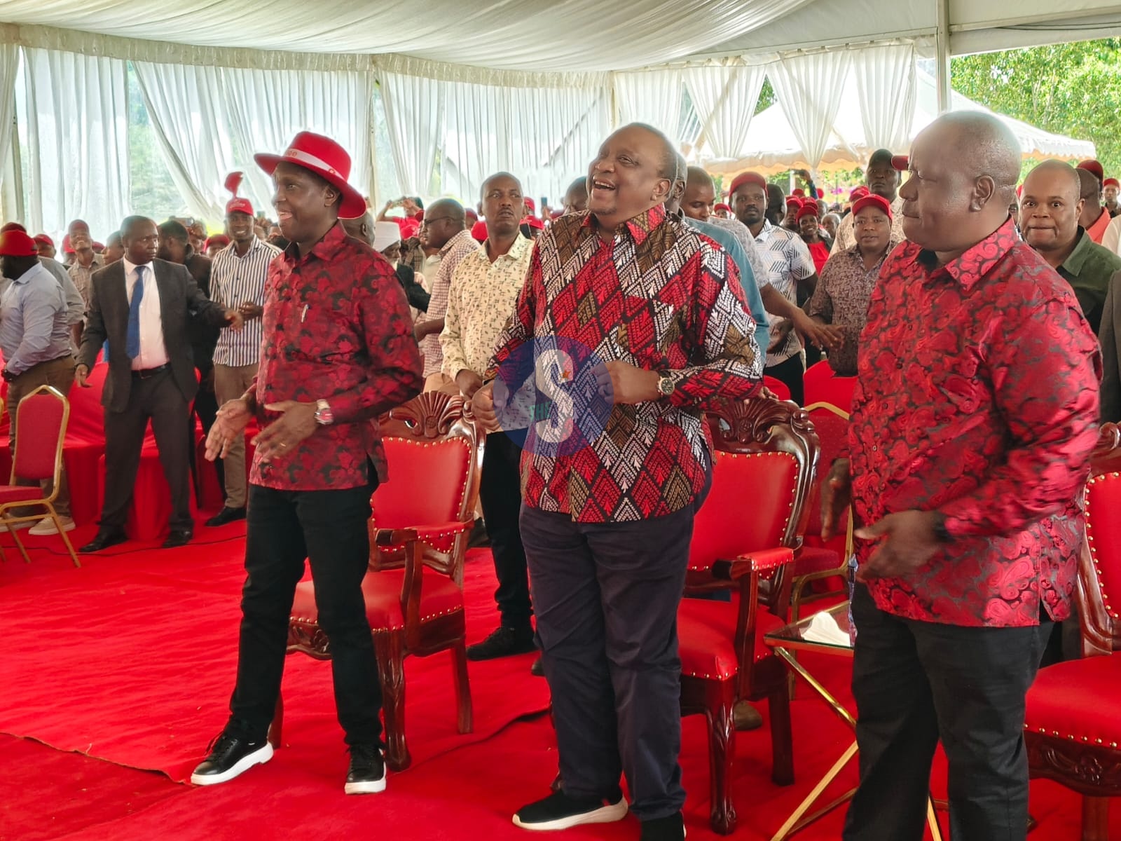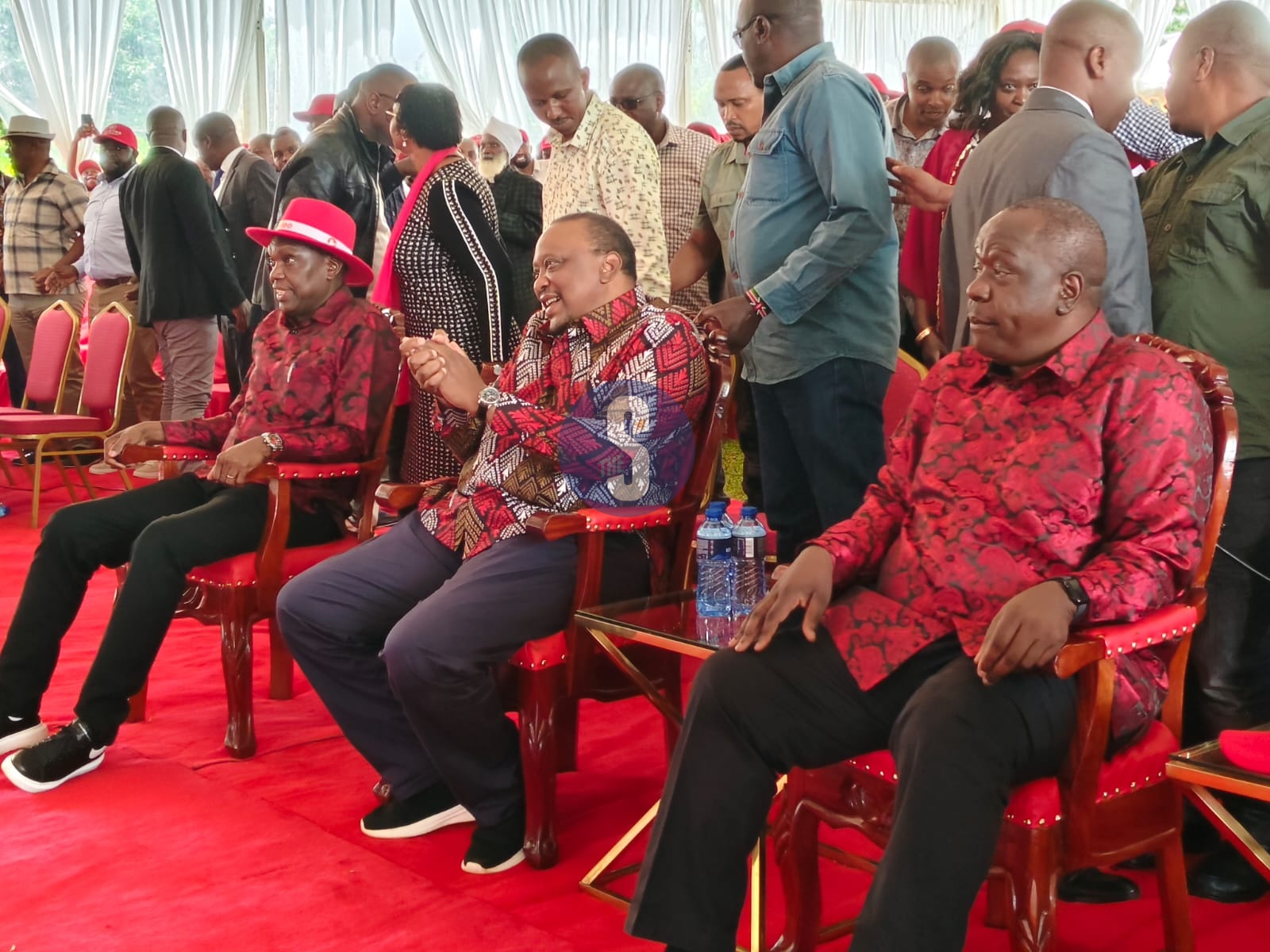 Jubilee Party Secretary General Jeremiah Kioni, Former President Uhuru Kenyatta and Former Interior Fred Matiang'i during the grassroots leaders meeting in Murang'a on November 7, 2025 / ALICE WAITHERA