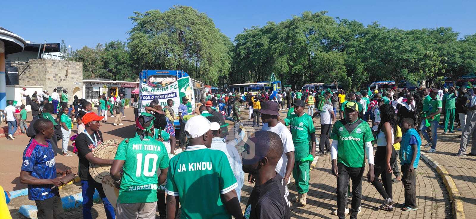 Wearing their green Gor Mahia jerseys, the supporters were energized and eager for the trip to Siaya. They carried placards, vuvuzelas, horns and drums, turning the ground into a lively scene.
