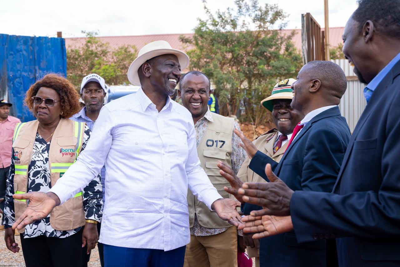 President Ruto engages Makueni Senator Dan Maanzo as Land and Housing CS Alice Wahome and Makueni Governor Mutula Kilonzo Jr. look on during his development tour in the Ukambani region on November 12, 2025./PCS