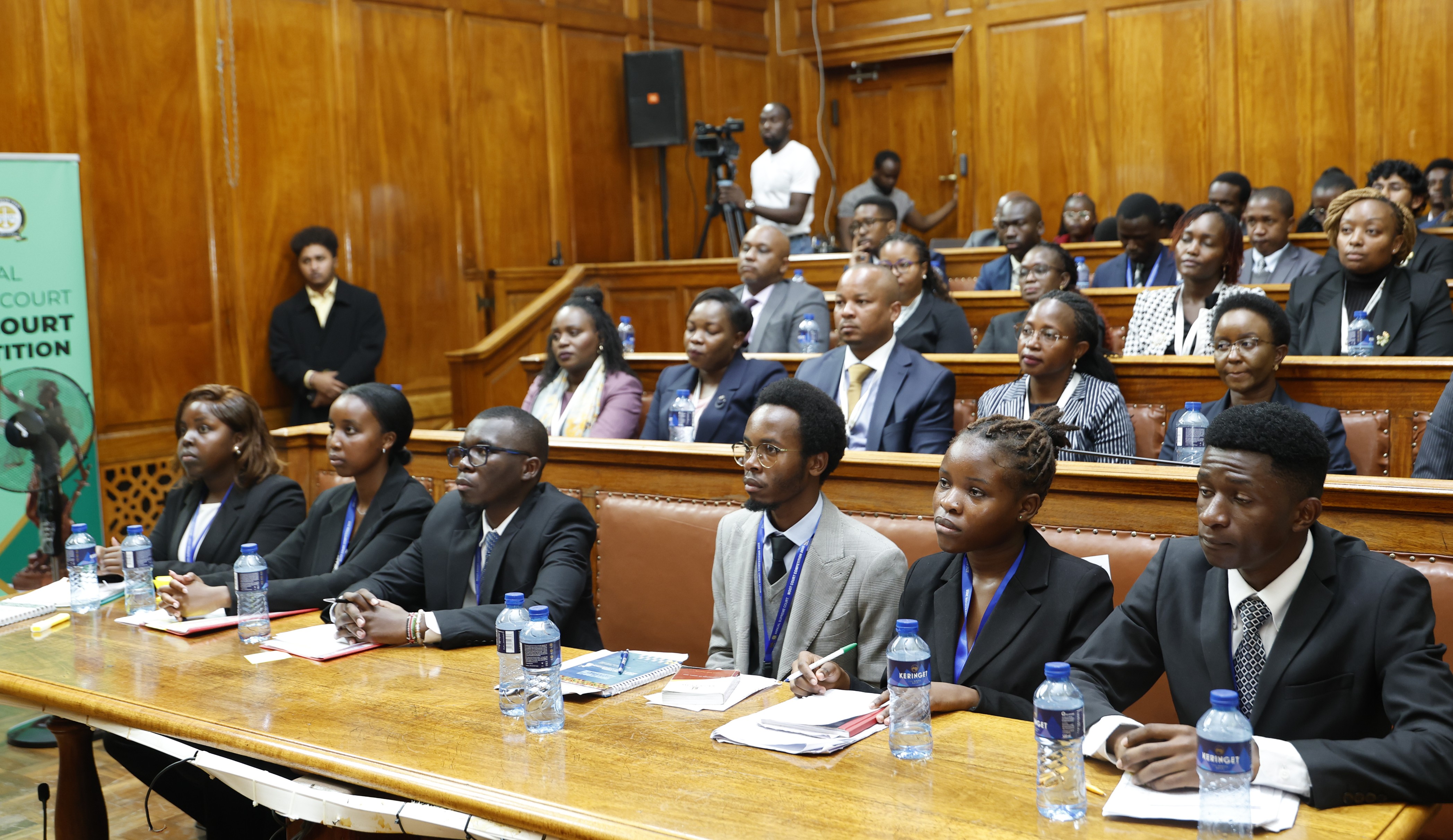 The Moot Court bench for the finals featured an eminent panel comprising Chief Justice Martha Koome (presiding), Supreme Court Justices Isaac Lenaola and William Ouko, and international judges Katelijne Declerck of Belgium, Catherine Koutsopoulou of Greece, and Maria Torres of the Philippines.
