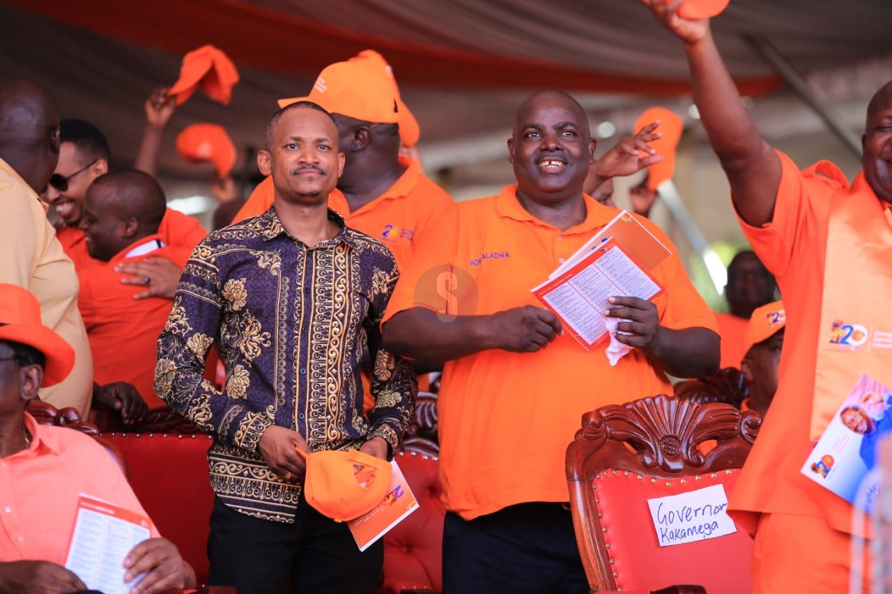 ODM leader Oburu Odinga with Mombasa Governor Abdulswamad Shariff during ODM@20 celebrations at Mama