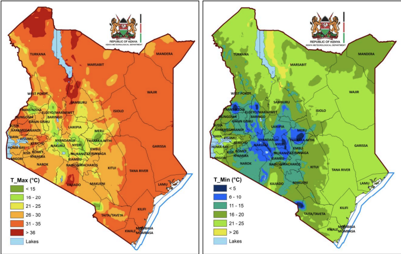 Maximum temperatures in Mombasa and Malindi will range between 31°C and 33°C.